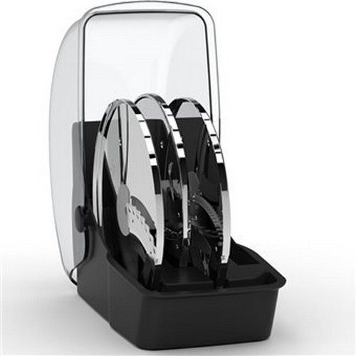 3 snijschijven voor groenten en vruchten:gegolfde plakjes, reepjes en julienne.Met handige opbergdoos voor de accessoires.